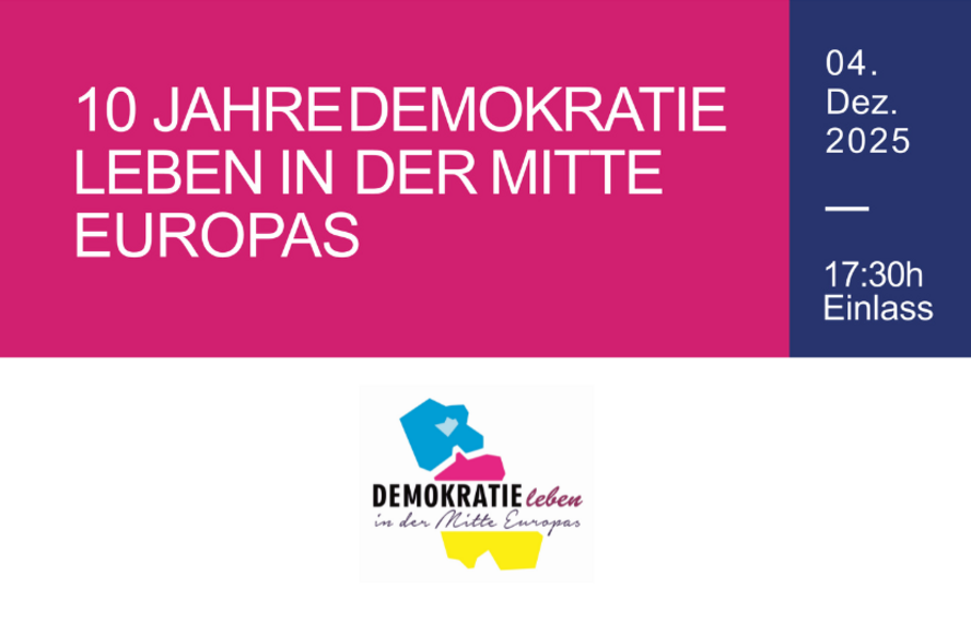 Der Abend bietet inspirierende Impulse, spannende Diskussionen und vielfältige Begegnungen – und feiert gleich zwei Jubiläen: Zehn Jahre „Demokratie leben in der Mitte Europas“ und ein Jahr Fachstelle Demokratie und Partizipation. Alle Interessierten aus der Region sind herzlich eingeladen, mitzudiskutieren und mitzufeiern!