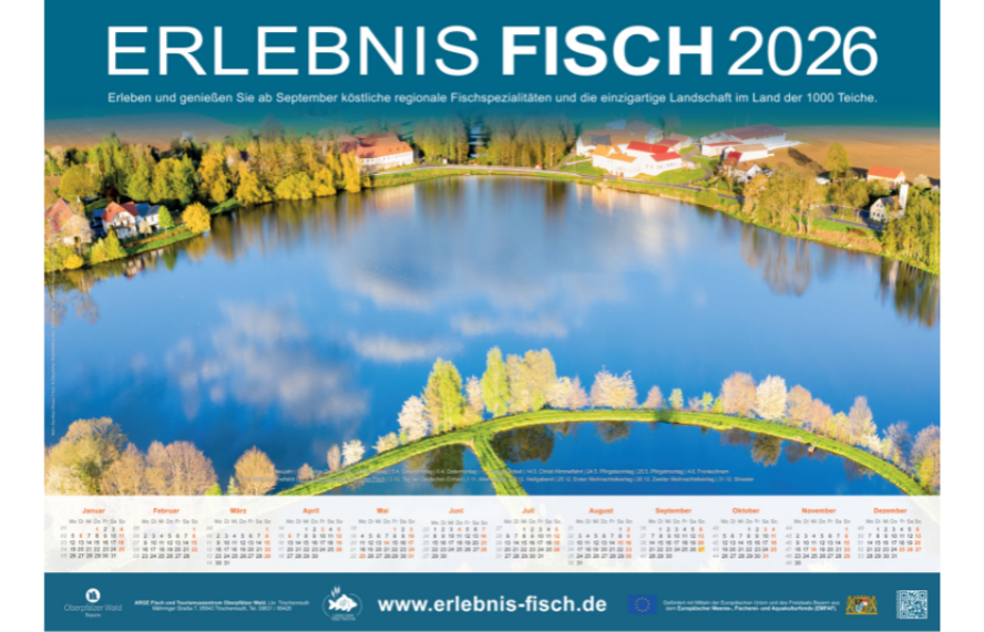 Bei ihren Großveranstaltungen im Herbst anlässlich der Karpfensaison liefert die ARGE Fisch im Landkreis Tirschenreuth nicht nur Jahr für Jahr die kulinarischen Highlights und Aktivitäten rund am das Thema Fisch. Viele Landkreisbewohner und Gäste aus Nah und Fern freuen sich alljährlich auch darauf, einen der beliebten Wandkalender „Erlebnis Fisch“ zu ergattern. „Gefühlt ist der Kalender mehr ein Poster aus dem Land der 1000 Teiche geworden, auf welches sich viele Leute freuen“, so Thomas Beer, 1. Vorsitzender der ARGE Fisch. Dieses Mal ziert ein sommerliches Motiv der Tirschenreuther Teichpfanne den Kalender der ARGE Fisch.